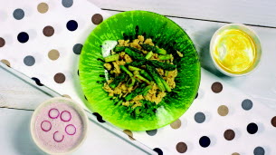 Aujourd'hui, on vous propose une entrée, plat et dessert à réaliser en 30 minutes. On vous conseille de préparer en premier la polenta aux raisins car il est préférable...